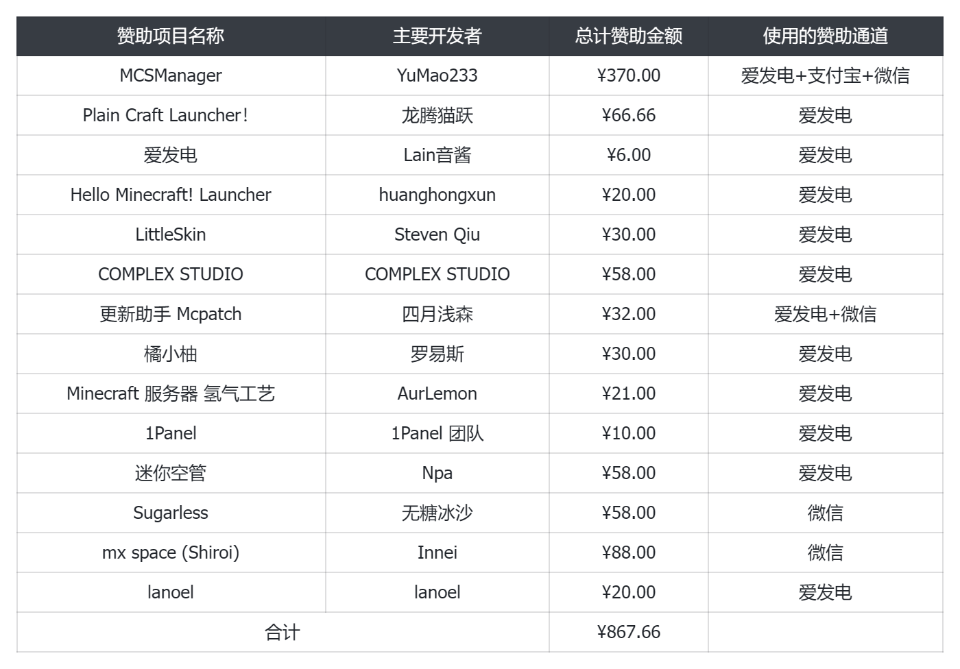 赞助名单