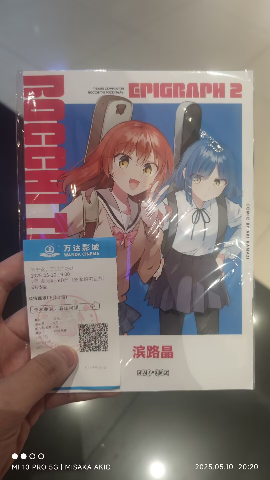 然后晚上在别人的建议下去看了下电影放松心情,鉴于五一档的电影都很难平,秉着波奇酱好看捏的心情就直接去看孤独摇滚的下部了(正好是内地上映的第一天)