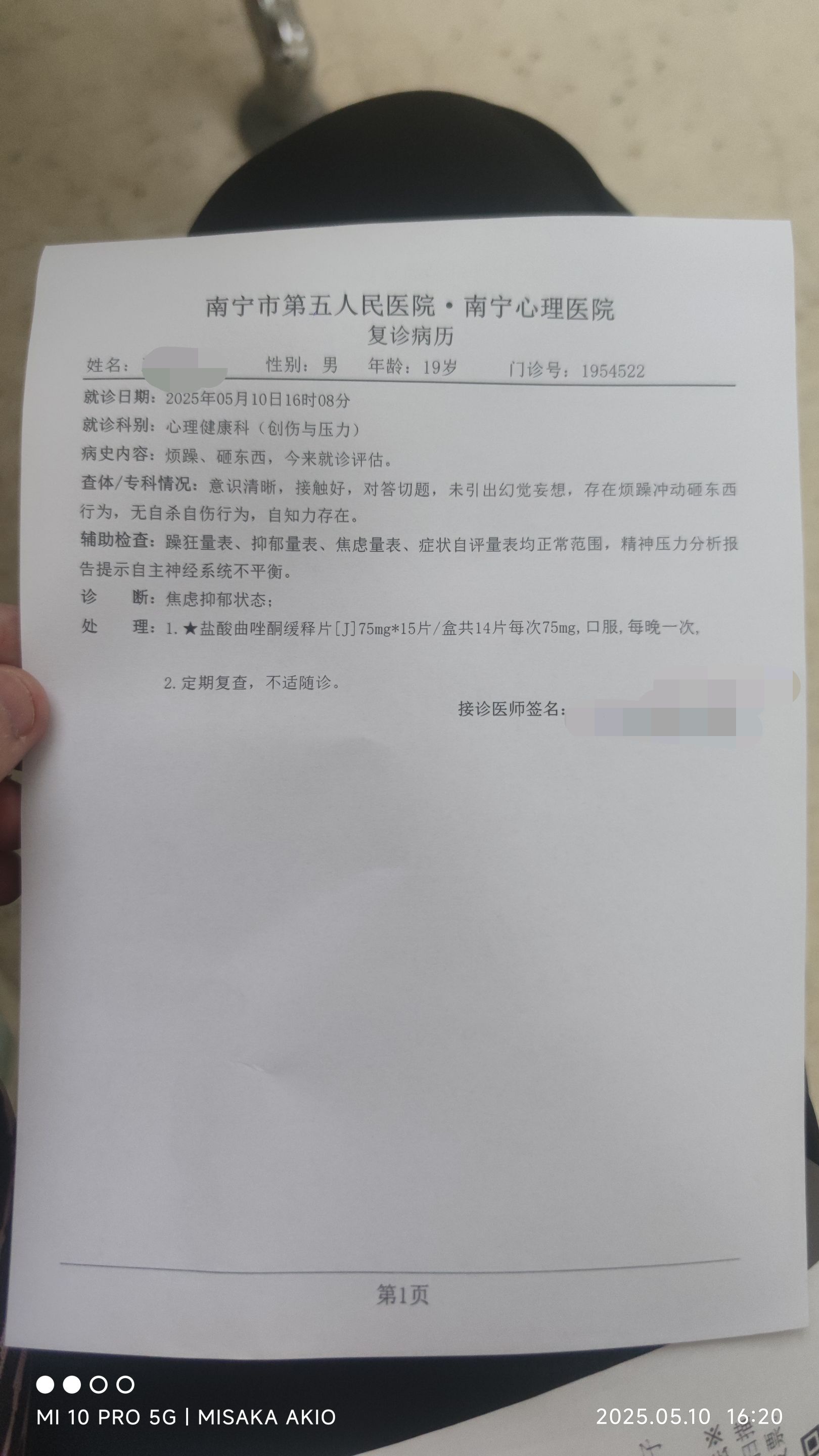 正如标题所言,我被确诊为焦虑抑郁症状,上周六的事情了