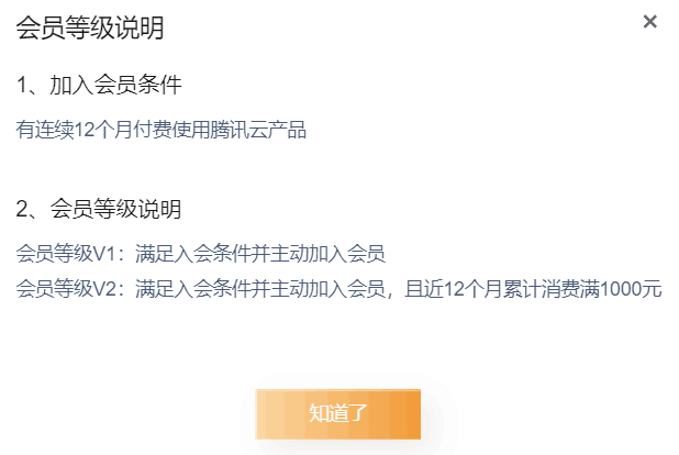 事情很简单,我想看看腾讯云会员是不是那种玩法(dddd),然后点了个开通,结果直接把我捅到V2,我还一毛钱没交,吓得我以为是30天试用(结果并不是,根本没有30天试用的提醒)