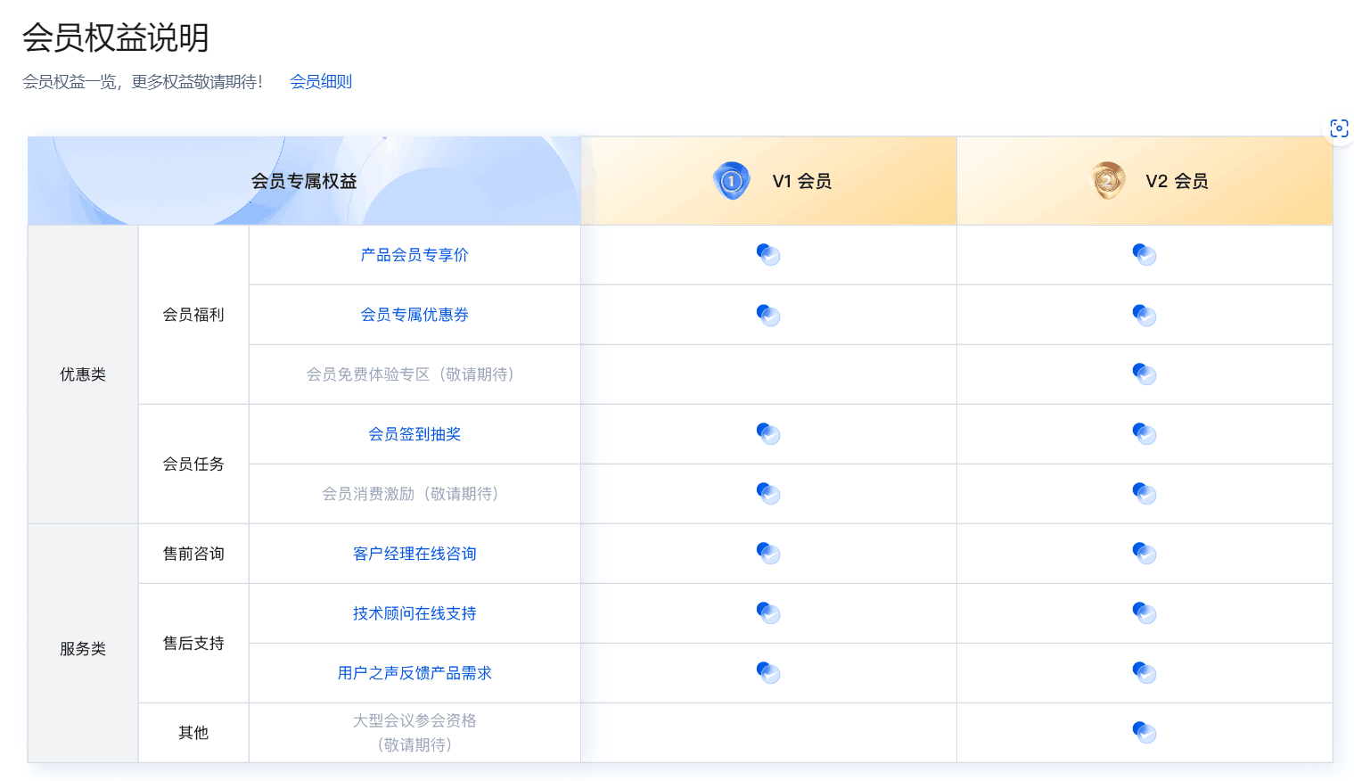 不过现阶段V1和V2会员没有什么区别,应当说是值得观望一下,但也不是不能入,毕竟不用花钱